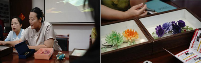 天津師大“津蘊匠師”研學團與蘇老師交流時,那一件件精致的絨花,正是傳統與現代的對話。在快節奏的當下,蘇老師堅守“在衰落遺失邊緣堅守,在快捷功利繁榮里堅持”,讓絨花從歷史深處走來,融入現代生活,成為非遺“破圈”的典范,讓古老技藝續寫著浪漫。