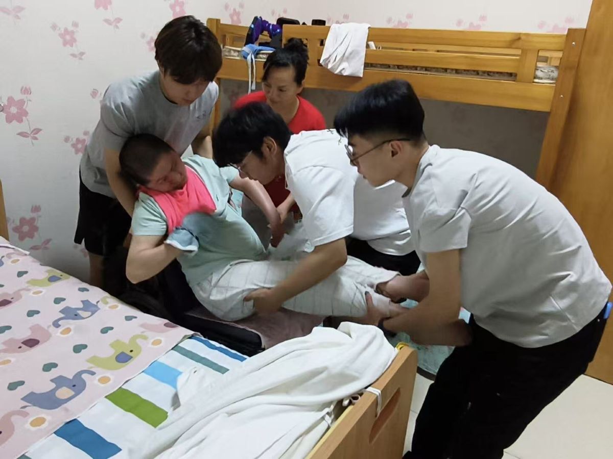 實踐團成員與負責人溝通了解老人們的需求。活動中,成員們分工協作,既有細致的日常照料,也有充滿溫情的互動環節。他們協助護理人員喂老人吃飯,教老人使用智能手機與家人通話,用耐心與細心傳遞溫暖。午間休息時,成員們與老人們圍坐暢談,傾聽他們講述過去的人生故事,分享當下的生活感悟。