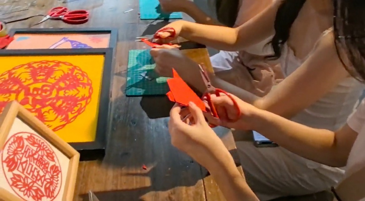 圖為寧波工程學院英語專業(yè)學生在體驗剪紙。鄭思萱供圖