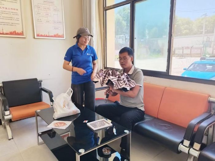 王勇主任對實踐隊員的創意給予了高度評價。他表示,文創產品是博物館與公眾連接的重要橋梁,這些設計巧妙地將古老紋飾與現代生活用品相結合,讓馬家窯文化以一種更加生動、有趣的方式被大眾所接受。這種創新模式不僅有助于文化的傳播,也為博物館的未來發展提供了新的思路。丁書記也對這些文創產品表示了贊賞,認為這為當地馬家窯文化的傳承與發展注入了新的活力。這些交流活動不僅展示了實踐成果,也為未來的合作奠定了基礎。通過與當地文化機構和社區的緊密合作,實踐小隊得以更深刻地理解馬家窯文化的精髓,并將其融入到設計之中。