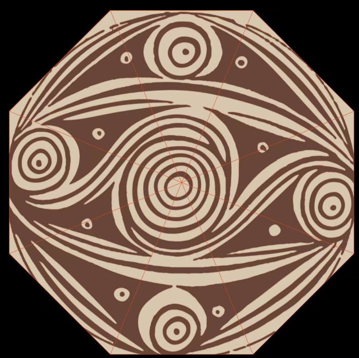馬家窯彩陶紋樣傘:設計靈感來源于馬家窯彩陶紋樣的對稱性結構特征,將古老的彩陶紋樣置于傘面之上,為街道增添一抹不一樣的色彩。