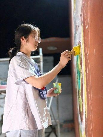 在魏莊小學(xué)食堂西側(cè),曾有一面長15米的灰白圍墻,單調(diào)得連藤蔓都不愿攀附。7月25日清晨,這面墻迎來了它的"高光時(shí)刻"——河海大學(xué)滿天星支教團(tuán)的畫筆落下第一抹鈷藍(lán),開啟了為期三天的"墻面重生計(jì)劃"。
