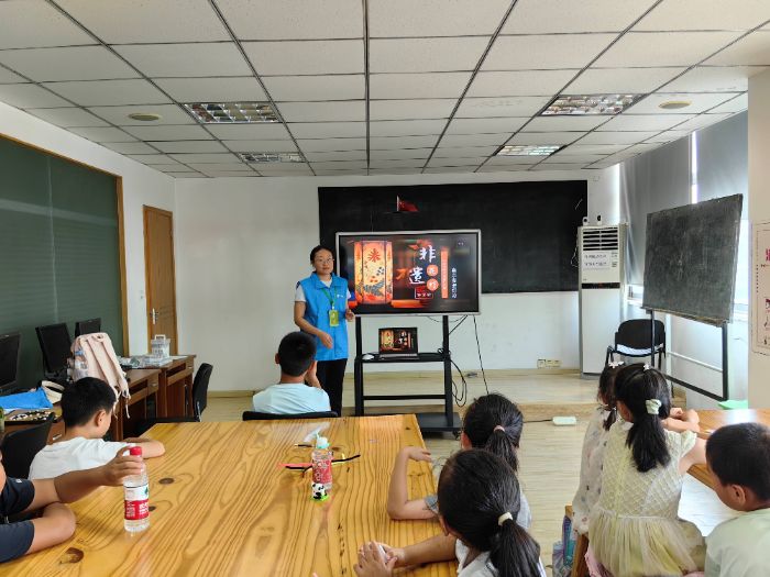 “Thisis‘Qinhuaidengcai’,theQinhuailanterns!”8月7日,團隊成員張心怡同學來到南京市江寧區東山街道愛心暑托班的課堂,為孩子們帶來了一場別開生面的趣味英語課堂。