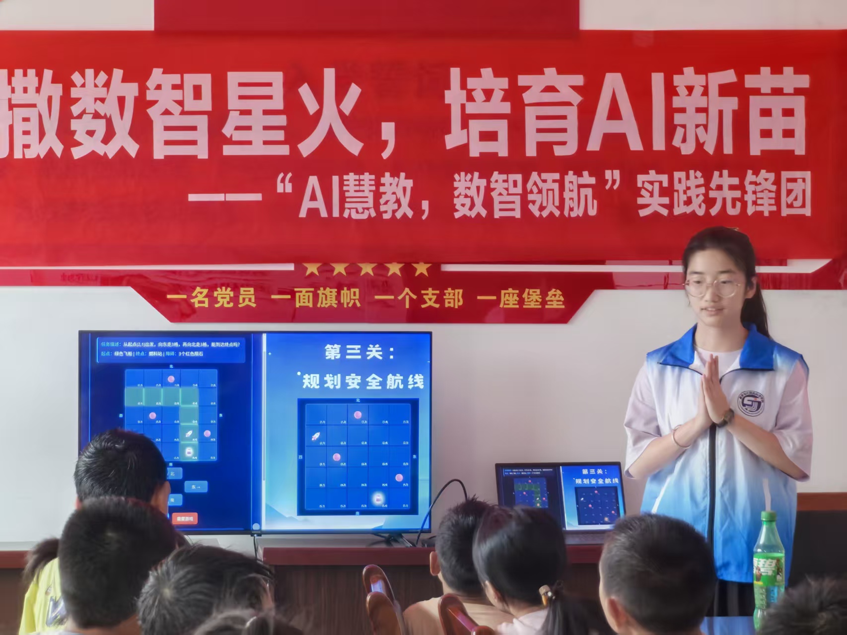 為積極響應國家鄉(xiāng)村振興戰(zhàn)略與教育數字化號召,近期,數計學院“AI慧教,數智領航”實踐先鋒團,在漢中市漢臺區(qū)武鄉(xiāng)鎮(zhèn)同力村順利開啟系列課程第十二講——“趣味AI數學課堂,點燃科學夢想”。為小朋友們帶來了一堂別開生面的“AI機器人太空數學趣味挑戰(zhàn)課”,將人工智能技術與數學知識巧妙融合,讓他們在沉浸式體驗中感受數學的魅力。課程由實踐團成員李鑫主講。