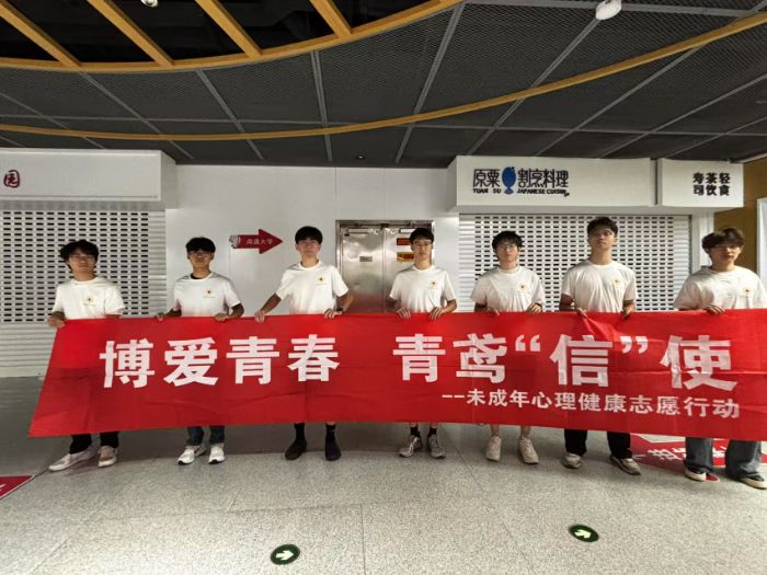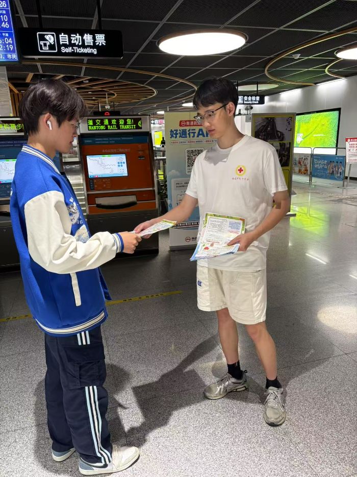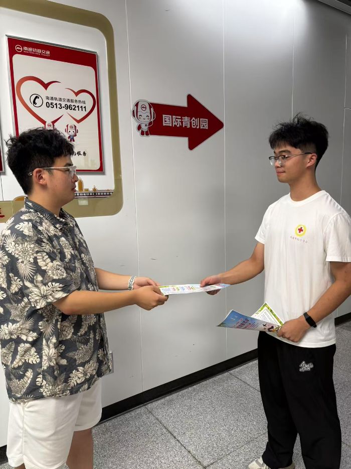 7月16日,南通大學(xué)地鐵站格外熱鬧。南通大學(xué)信息科學(xué)技術(shù)學(xué)院紅十字會“博愛青春”志愿隊開展了發(fā)放關(guān)愛未成年人心理健康宣傳冊活動,呼吁民眾從自我做起,攜手關(guān)注未成年人心理健康問題。