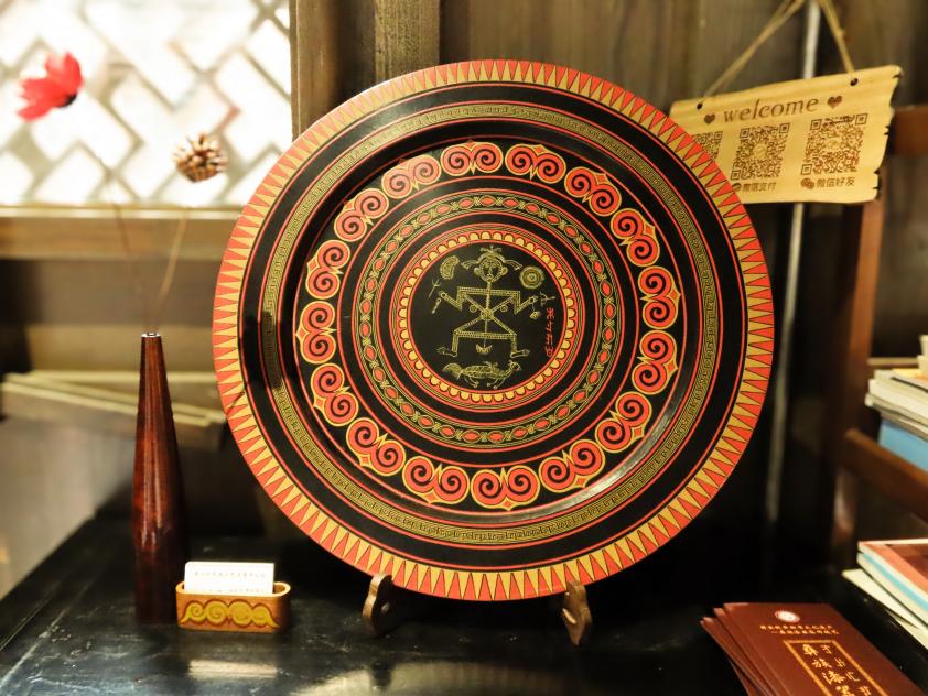 7月7日上午,實踐隊抵達西昌市建昌古城,拜訪彝族漆器省級傳承人吉伍五呷老師并展開座談交流。在吉伍五呷老師的熱情接待下,隊員們參觀了吉伍家族漆器工坊。吉伍五呷老師詳細講解了彝族漆器傳承千年的歷史脈絡、獨特的黑紅黃三色文化寓意以及繁復精湛的髹飾工藝流程。