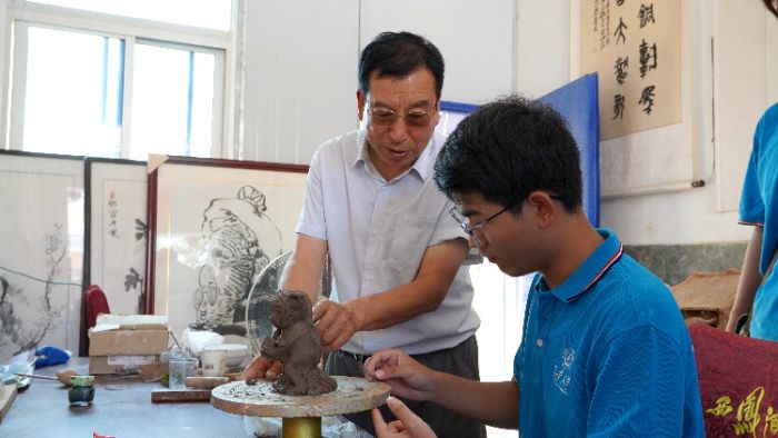 鳳翔泥塑非物質文化遺產傳承人黃忠祥師傅為隊員們現場展示了泥塑制作的完整工藝流程。從選土、和泥、捏塑成型到精細彩繪,每一步驟均凝結著匠人數十年積累的智慧與嚴謹專注的匠心。在黃師傅的悉心指導下,隊員們進行了泥塑制作體驗?此坪喖s的造型,實際操作卻對力道把控與細節處理要求極高。親身體驗讓隊員們深切體會到,每一件精美泥塑背后,都離不開匠人經年累月沉淀的深厚功底與追求極致的職業態度。這份對技藝的敬畏與精益求精的堅守,正是工匠精神在非物質文化遺產保護傳承實踐中的生動詮釋。