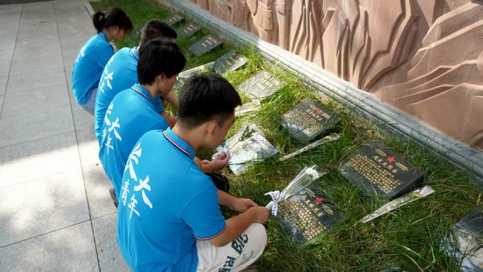 實踐團隊在烈士紀念碑前舉行悼念儀式并敬獻鮮花