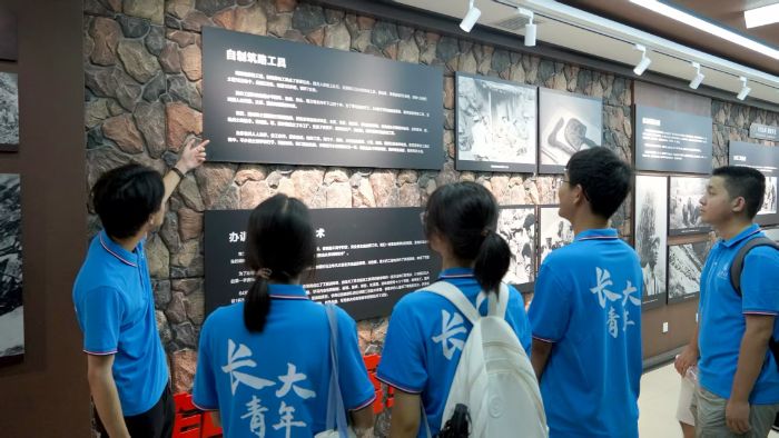 結束公益列車體驗,實踐隊來到寶天鐵路英烈紀念館。該紀念館作為全國鐵路系統重要的愛國主義教育基地,記載著為修建寶天鐵路而英勇獻身的鐵道兵與鐵路職工的豐功偉績。實踐隊隊員步入紀念館展廳,在銹跡斑斑的工具、磨損的工裝和泛黃的筆記前駐足凝望,深刻認識到寶天鐵路不僅是西北交通干線,更是用生命與熱血鑄就的“鋼鐵長城”,凝聚著一代人的理想與犧牲。