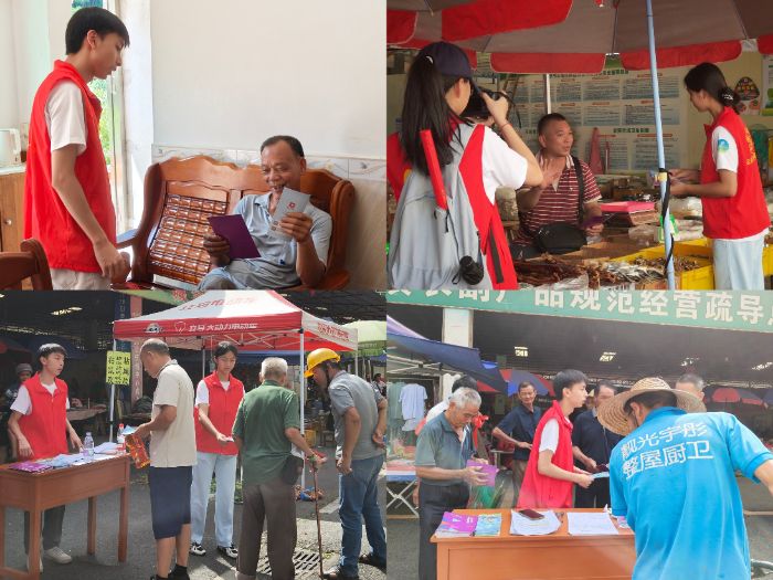 ▲圖為燎原隊在集市上、社區(qū)里宣傳資助政策