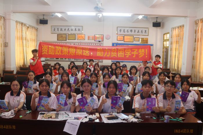 校園播撒希望:讓政策成為學子“定心丸” 南盛中學的教室里,一場別開生面的政策解讀正在進行。燎原隊隊員以“政策輔導員”身份,結合當?shù)貙W子成長實際,將國家資助體系拆解為“成長護航指南”:從義務教育階段的“兩免一補”如何落地,到高等教育階段助學貸款的申請路徑,再到各學段獎學金的激勵機制,用具體案例替代抽象條文,讓師生們清晰感知“從入學到畢業(yè)”的全周期政策支持。
