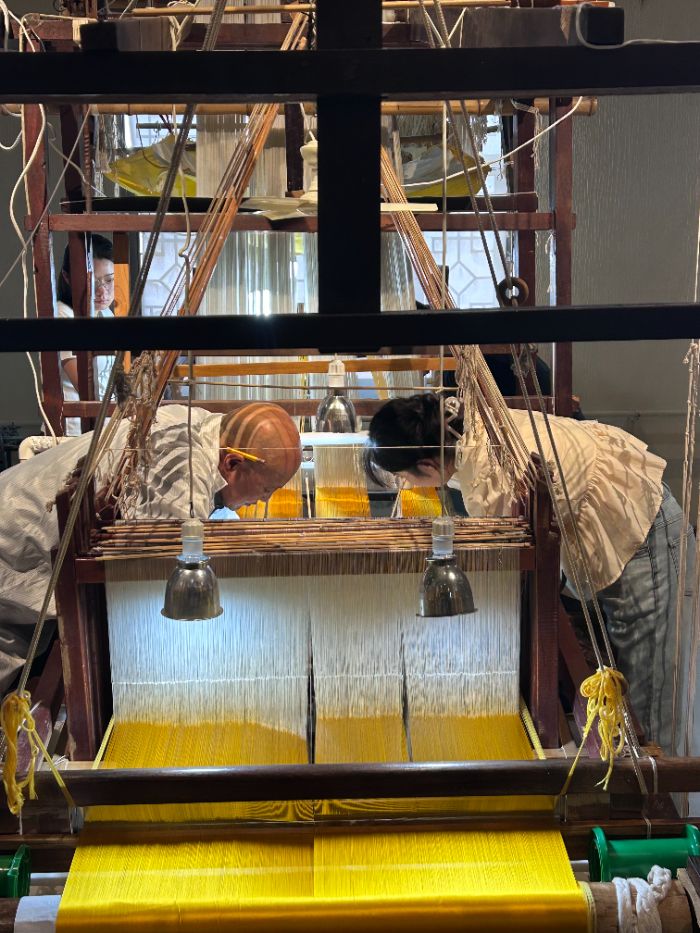有志愿者向小隊透露,“影子云錦”沉浸艙正在內(nèi)測中——游客站在指定的光斑里,墻面可以實時投射出剪影,揮手即可切換紋樣,拍到就是大片;1:1復制的虛擬織機正在調(diào)試,未來可讓游客手機遠程“代踩”踏板,實時驅(qū)動展廳里的真織機走一小段緯線,“夠不著”也有了可觸可感的真實。