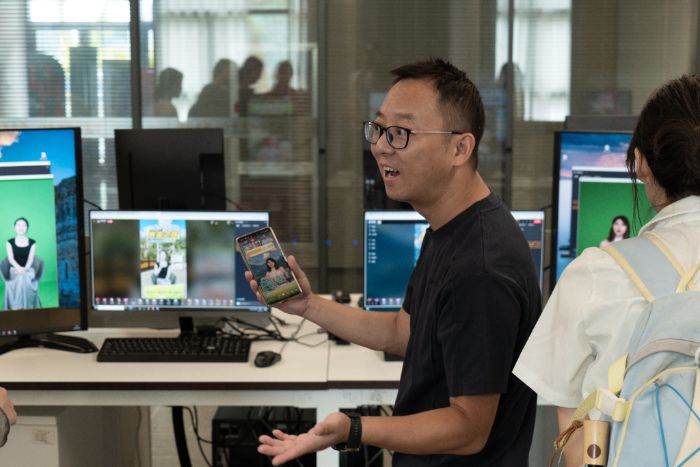 圖為社會實踐成員參觀阿里數(shù)字人直播基地。林冠琪攝