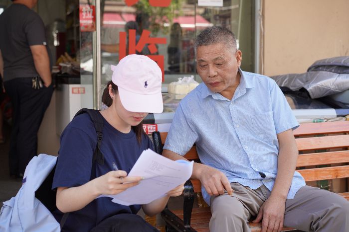 圖為社會實踐成員對村民進行問卷走訪。鄭果攝