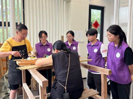 基于調研,隊員們決定深入源頭,去往余杭紙傘之家的工坊中感悟制傘傳承之道。在工業化的今天,這里依舊演奏著砧板與竹條的交響樂,將72道工序熬煮時光。隊員們先是認真學習了余杭紙傘的結構,而后在老師的耐心指導下,沉住氣,耐住性子,學習了穿花線技藝,并在實踐過程中針對“制傘過程”和“創新發展”等角度提出疑問,從年輕人的角度提出建議:可以與熱門的IP和品牌聯名,設計具有創意的文化衫和文創產品,對接電商和文旅以拓寬渠道,促使產業與文化相得益彰。