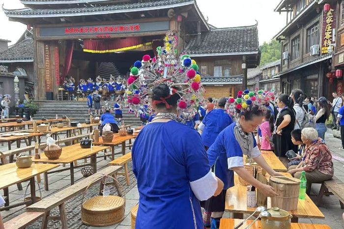 問卷中“年輕群體傳承意愿低”“宣傳不足”被列為非遺存續(xù)最大阻礙。百家宴敬酒歌混入流行旋律,侗族大歌表演為迎合游客縮短時長。村民表示,特定節(jié)日才有熱鬧場景,今年游客尤其少。當“高山流水”敬酒儀式淪為打卡項目,文化內(nèi)核正被稀釋。