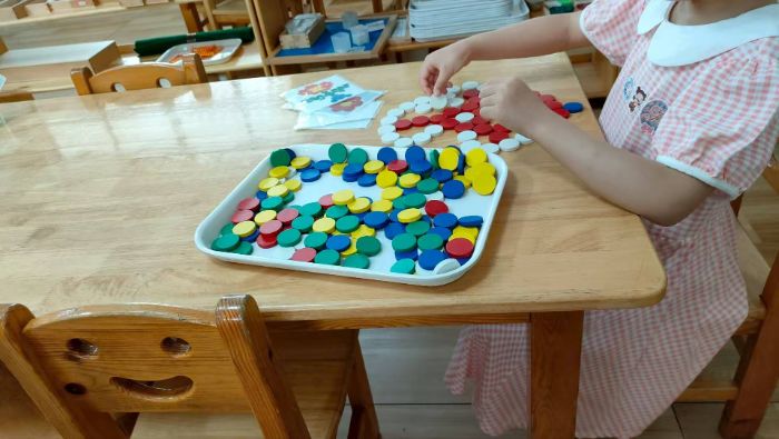 益智拼搭課則以彩色圓片為載體,搭建思維訓練場域。志愿者引導孩子觀察形狀、探索組合規律,鼓勵突破定式思維。在自由創作環節,圓片經小手拼組,接連誕生花朵、圣誕樹、城堡等造型,獨特想象力與空間思維能力,借由色彩與形狀的碰撞充分展現。孩子們在分享作品思路時,同步鍛煉語言表達,在互賞互評中拓寬創意視野。益智拼搭場域,圓片拼組的不僅是造型,更是思維的對談——分享奇思、協作試錯,把“我想的”變成“我們做的”。