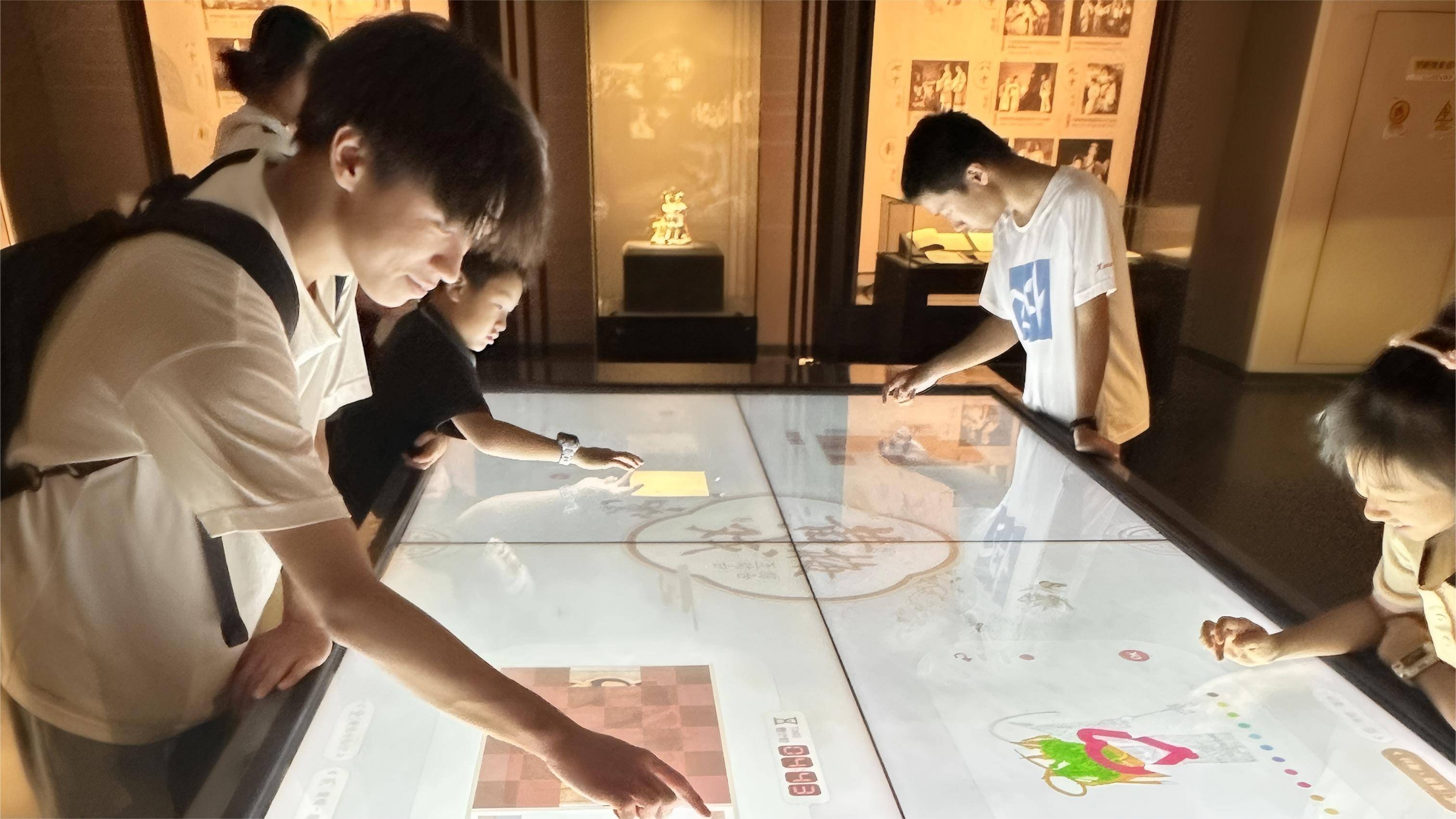 圖為團(tuán)隊(duì)成員在安徽中國(guó)黃梅戲博物館的“數(shù)字化展區(qū)”體驗(yàn)