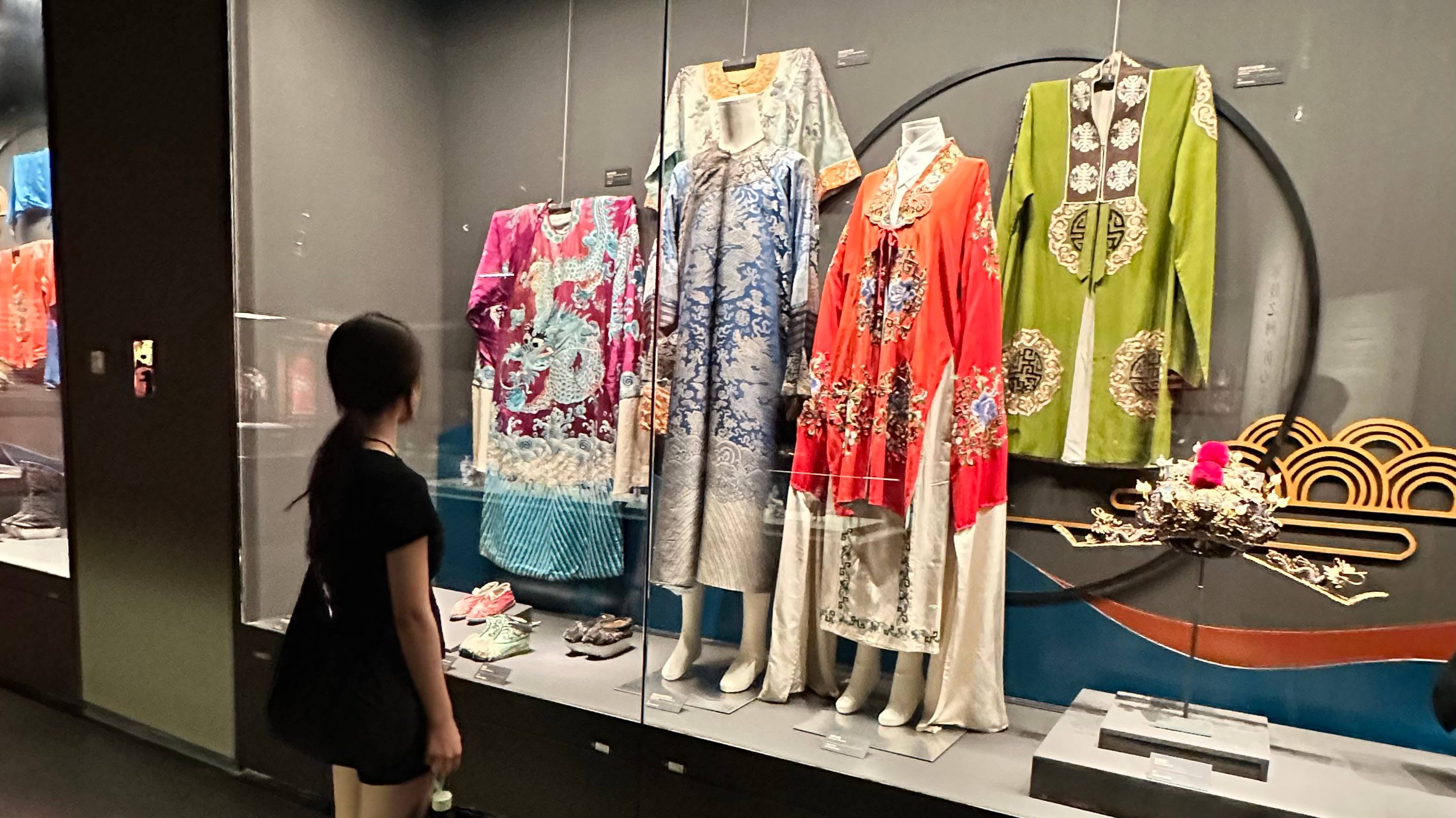 實(shí)踐首站,團(tuán)隊(duì)走進(jìn)安徽中國(guó)黃梅戲博物館。館內(nèi)陳列豐富,展示了黃梅戲從民間小調(diào)發(fā)展為成熟劇種的完整歷程:從清乾隆年間鄂皖交界地區(qū)的采茶調(diào),到道光年間的"三打七唱"形式,再到民國(guó)時(shí)期的舞臺(tái)藝術(shù)完善,最后到新中國(guó)成立后的繁榮發(fā)展,每個(gè)階段都有詳實(shí)的文物佐證。成員們認(rèn)真觀摩戲曲文物、傳統(tǒng)樂器、戲服等珍貴展品,累計(jì)采集圖文及視頻資料50余份。在“數(shù)字化戲臺(tái)”展區(qū),深刻感受到科技為傳統(tǒng)戲曲帶來(lái)全新生命力。博物館不僅記錄了黃梅戲吸收徽劇、京戲等姊妹藝術(shù)精華的歷史,也呈現(xiàn)了其在新時(shí)代不斷推陳出新的努力,為調(diào)研提供了扎實(shí)的史料基礎(chǔ)。在這里,我們不僅看到了黃梅戲的過去,更看到了它在現(xiàn)代科技時(shí)代下的無(wú)限可能。