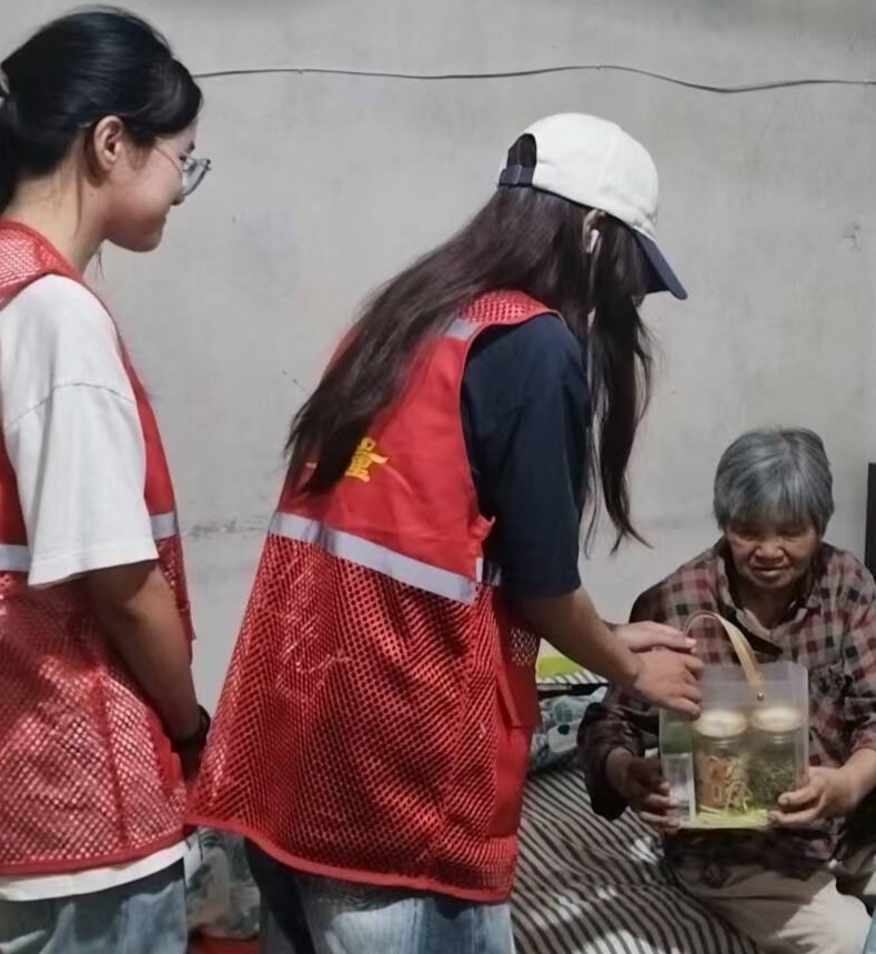 活動期間,正值酷暑難耐,碳援小隊首先把關懷送給了社區里的獨居老人。隊員們帶著菊花茶,風油精等避暑物資,穿梭在社區的樓道間。在老人家中,隊員們圍坐在老人身旁,認真傾聽老人們講述往昔歲月。這些交流不僅驅散了夏日的炎熱,更讓老人們感受到社會的關愛,讓他們不再孤單。