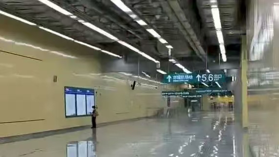 在上海市域機場線景洪路站,團隊成員體驗市域機場線與15號線新啟用的地下換乘通道。