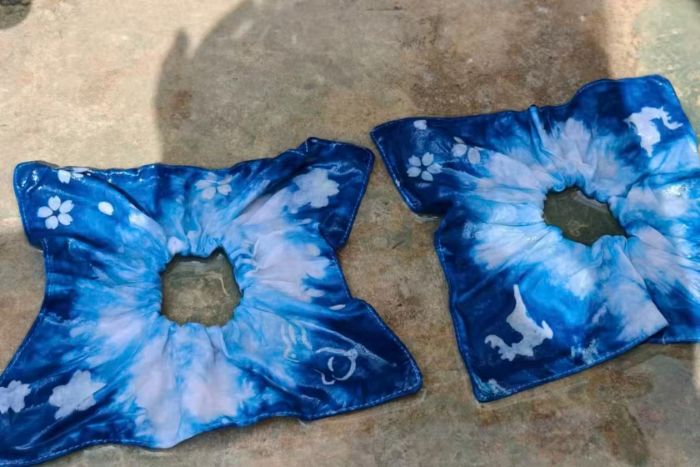 為增強實踐過程的體驗深度,在老師的邀請下,團隊成員全程參與了豆染制作環節。從圖案拓印到染色晾曬,通過親手操作,直觀感受非遺技藝的工藝特點與文化魅力。制作期間,圍繞非遺傳承保護措施及未來發展方向對傳承人進行采訪,了解到豆染的起源與一則民間故事相關。交流中,老師堅守傳承使命、始終秉持初心的匠人精神得到充分體現。活動同步設置雙語互動環節,老師們以質樸方言結合普通話的形式開展技藝展示與教學活動。