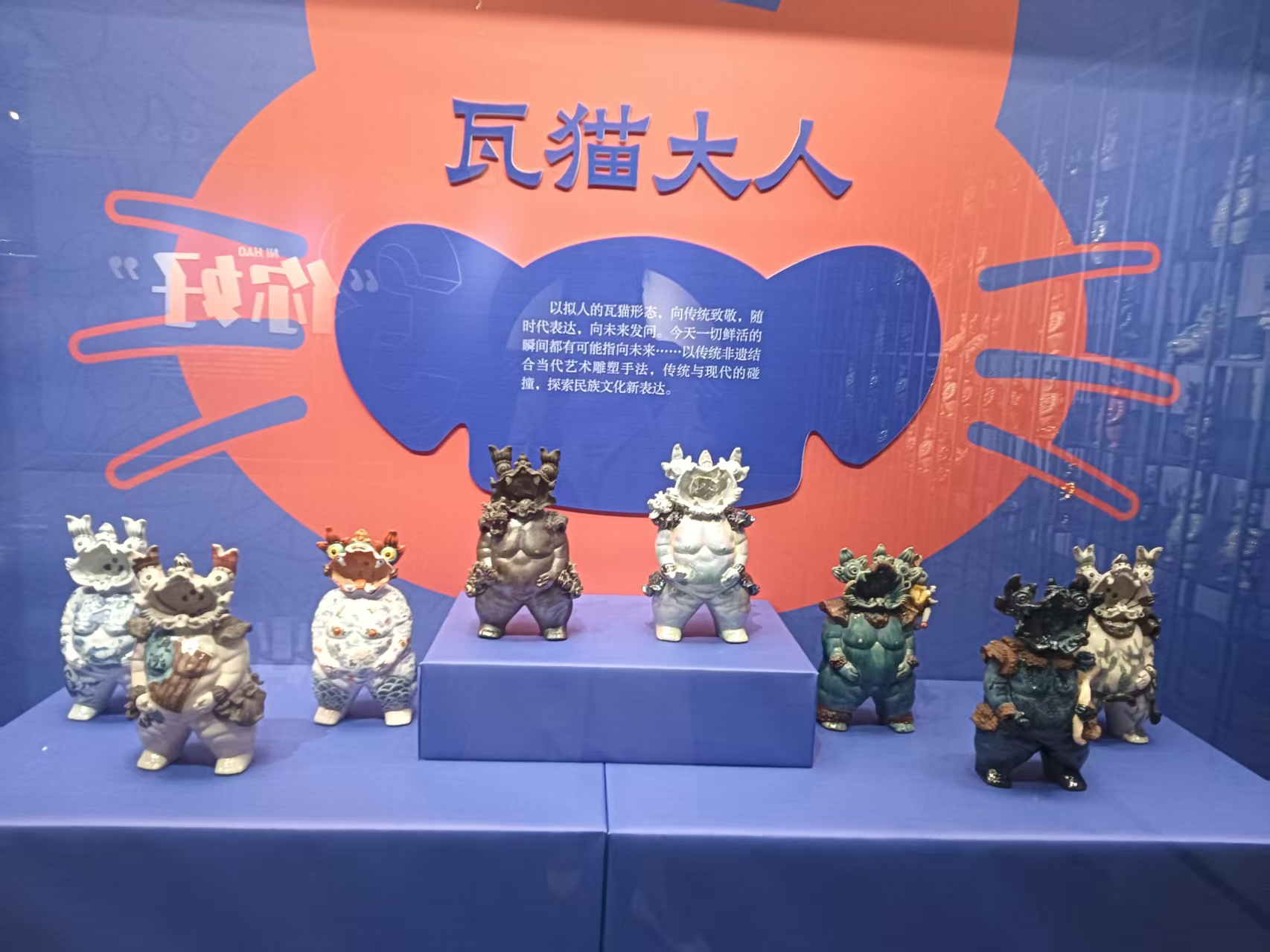 在博物館講解員的帶領(lǐng)下,我逐步走進(jìn)瓦貓的世界。瓦貓雖名為“貓”,實(shí)為鎮(zhèn)宅辟邪的神獸陶塑,常見(jiàn)于云南傳統(tǒng)民居的屋脊上,形態(tài)夸張、充滿張力,融合了信仰、民俗與手工藝智慧。我從不同年代、不同造型的瓦貓中,讀懂了它背后所承載的民間故事與地域精神。