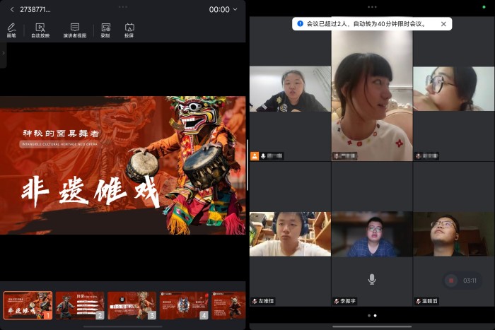 活動伊始,團隊成員通過線上會議進行了充分的籌備與討論。會上,路隊隊長詳細闡述了此次實踐活動的目的與意義,明確了實踐內容與日程安排。隨后,團隊成員們共同觀看了關于貴州儺戲的介紹視頻,初步了解了這一古老戲劇形式的起源、發展與現狀。