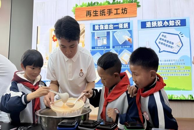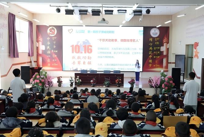 實踐團走進墨竹工卡縣扎西崗鄉南京希望小學,精心打造“七彩課堂”教育幫扶品牌,為130余名鄉村學生帶去多彩知識盛宴。“青言理響”紅色宣講課堂生動講述熱愛祖國、民族團結和社會主義核心價值觀,在孩子們心中播撒紅色種子;藍色科技課堂弘揚“兩彈一星”精神,帶領孩子們感受科學力量,激發科技報國夢想;金色財商課堂推出“財富樹成長計劃”,通過情景模擬與游戲互動,引導孩子們認識貨幣、理解儲蓄、學習理財,樹立起正確的財富觀念;綠色環保課堂妙趣橫生,將環保理念融入“垃圾分類大闖關”“再生紙手工坊”等游戲活動,孩子們在動手實踐中深化環保理念;“淮墨新韻”雙語歌會上,普通話填詞的藏族民謠悠揚動聽,漢藏學子攜手歡唱,用跨越語言的歌聲架起民族團結的連心橋。這堂跨越千里的七彩課堂,不僅為雪域高原的孩子們打開了知識之窗,更用愛與智慧譜寫了民族團結的動人樂章。