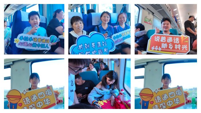 ▲圖為團隊成員在列車上進行普通話推廣活動/圖注