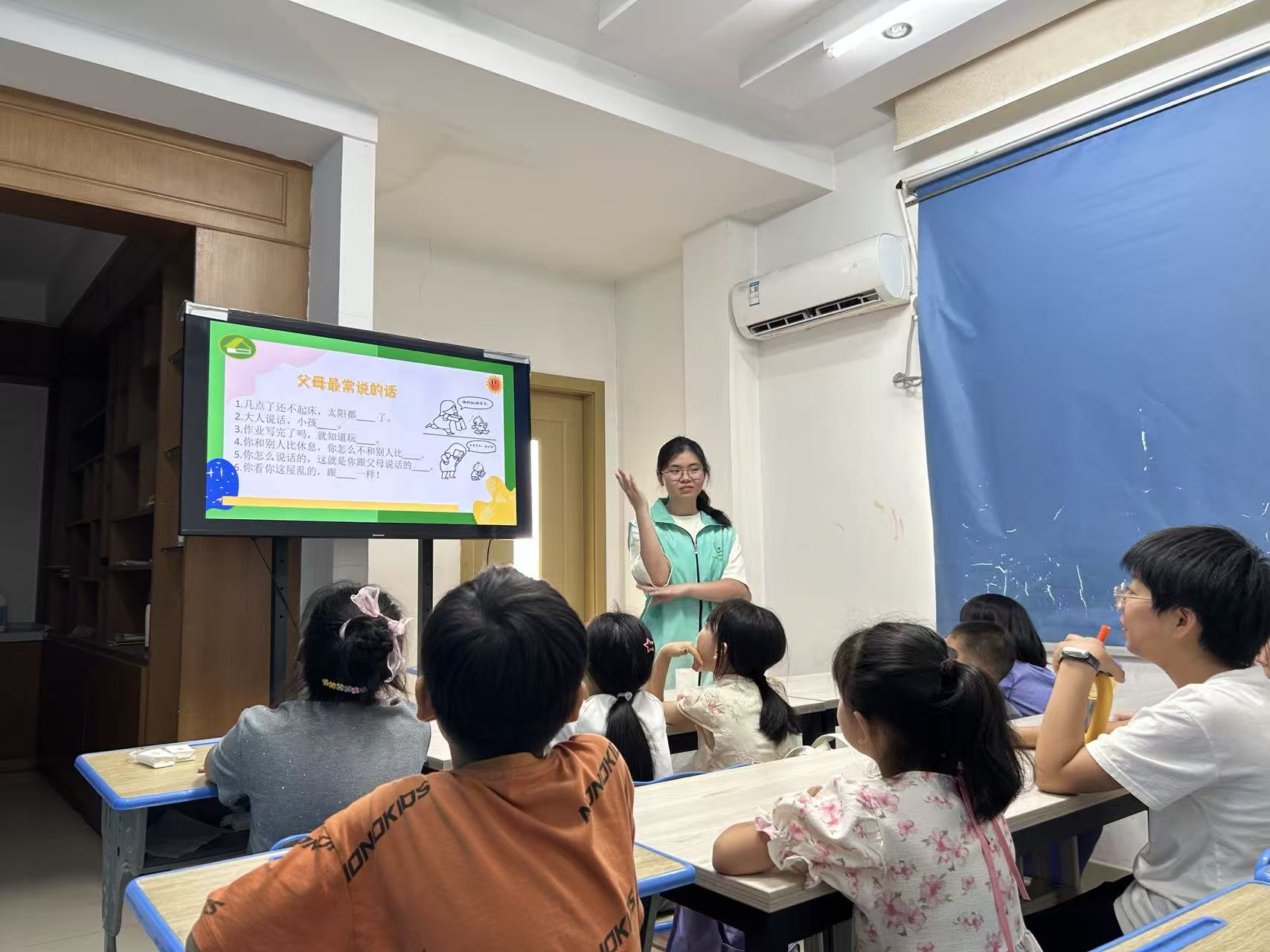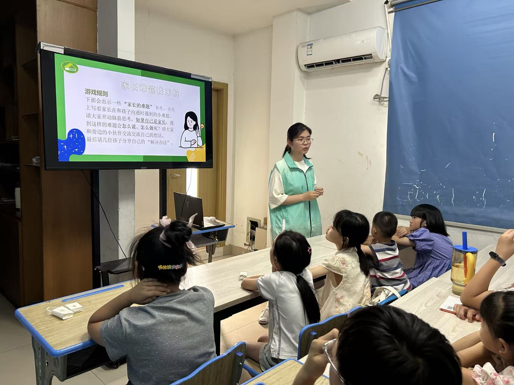 活動伊始,團隊引導孩子們分享父母日常話語。孩子們踴躍開口,談及父母的叮囑與期望,在輕松氛圍中拉近了彼此距離,也引出了親子溝通的常見內容。接著,團隊開展情景模擬、“家長難題我來解”等小活動,讓孩子們直觀感受到不同溝通方式的差異,逐漸意識到自身在交流中的可改進之處,并拋出家長們的溝通困惑,邀請孩子們站在家長視角思考對策。孩子們積極獻計,既鍛煉了換位思考能力,也讓家長看到了孩子的理解與擔當,為破解溝通難題提供了新思路。最后,團隊成員講解溝通技巧,圍繞傾聽、表達與尊重展開分享。孩子們邊學邊實踐,在互動中掌握了更有效的溝通方法,為構建和諧親子關系打下了扎實基礎。