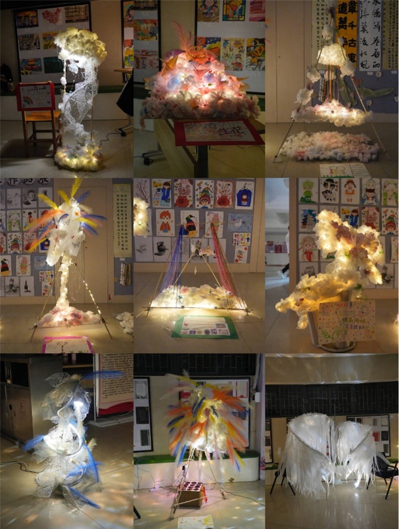 圖4 實(shí)踐隊(duì)指導(dǎo)孩子們制作的燈光裝置作品