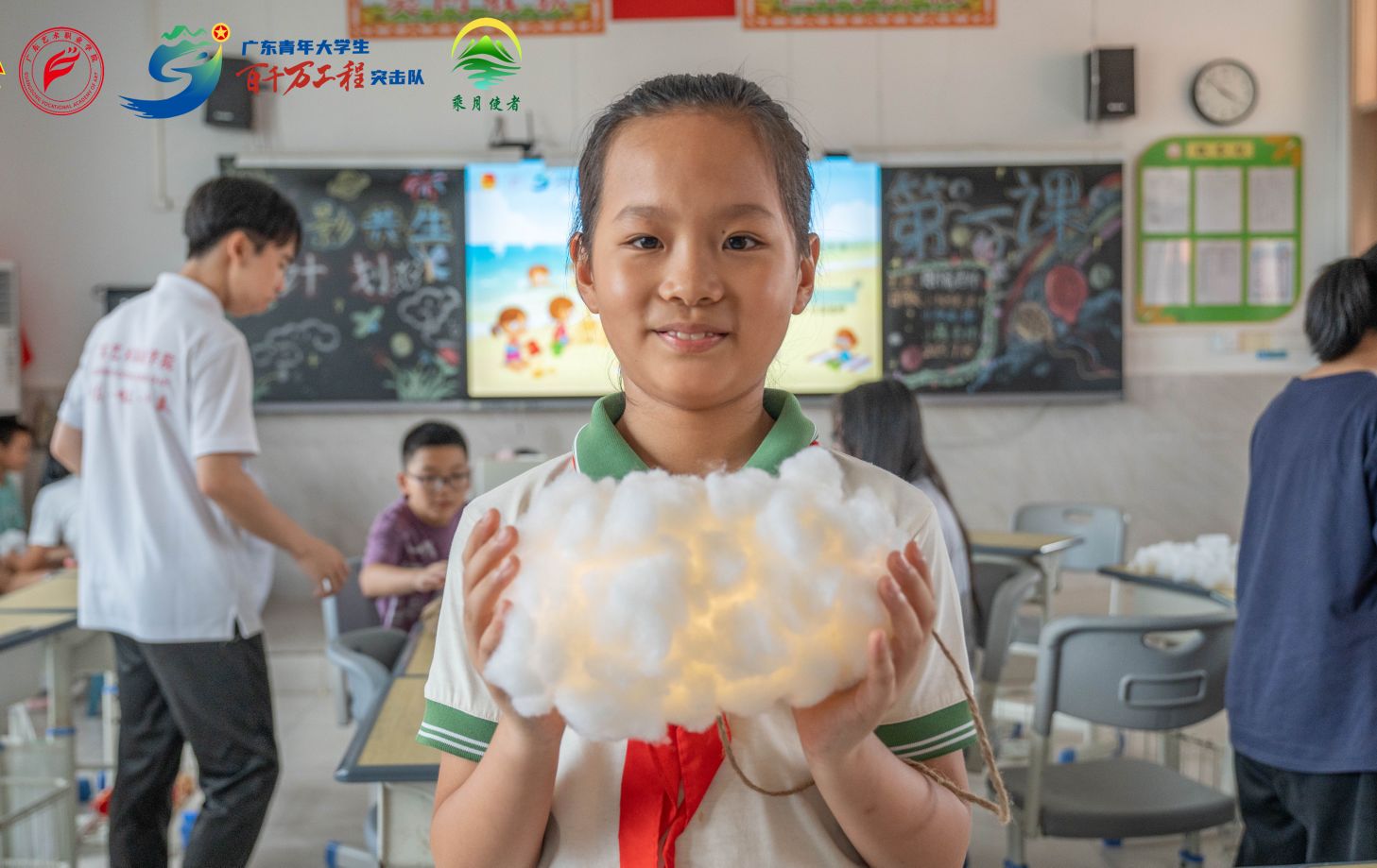 圖2 實(shí)踐隊(duì)成員指導(dǎo)孩子們制作的“云朵燈”