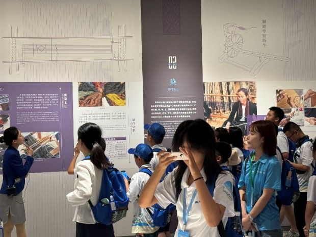 為了學(xué)習(xí)和傳承海南非遺文化,8月21日,團(tuán)隊(duì)前往海南省非物質(zhì)文化遺產(chǎn)展示中心,以"絞纈古法"為鑰,為青少年開啟黎族織染的千年密碼。