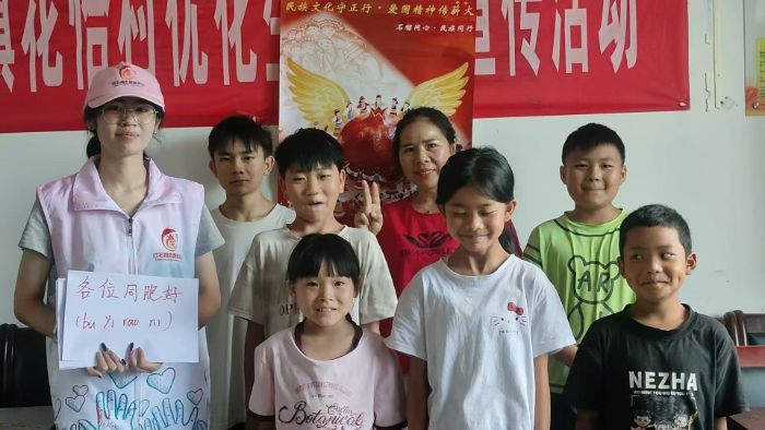 2025年8月9日,南京師范大學泰州學院“紅石榴”志愿隊聯(lián)合貴州省安順市西秀區(qū)雙堡鎮(zhèn)花怡村村委會,開展以布依族文化傳承與推廣為主題的實踐活動。活動通過民族文化小課堂、互動小游戲等形式,面向村內多名兒童傳遞布依語言與文化知識,在豐富鄉(xiāng)村文化生活的同時,進一步強化民族情感聯(lián)結,彰顯民族團結進步的積極效應。