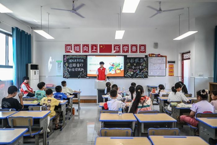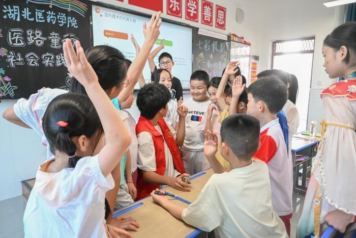 “醫(yī)路童行”社會(huì)實(shí)踐隊(duì)已在該校開展為期六天的支教活動(dòng),每一天都被孩子們純真的笑容與旺盛的求知欲所填滿。此次活動(dòng)不僅是青年學(xué)子“三下鄉(xiāng)”社會(huì)實(shí)踐的生動(dòng)實(shí)踐,更是將湖北醫(yī)藥學(xué)院的醫(yī)學(xué)人文關(guān)懷融入鄉(xiāng)村教育幫扶的具體行動(dòng)。隊(duì)員們充分利用學(xué)科特色,在課程中融入健康理念引導(dǎo),同時(shí)也注重培養(yǎng)孩子們樂觀自信、樂于交往、勇于探究的綜合素養(yǎng)?吹胶⒆觽儩M足的笑臉和閃閃發(fā)亮的眼神,是對(duì)志愿者們傾情付出最珍貴的回饋。