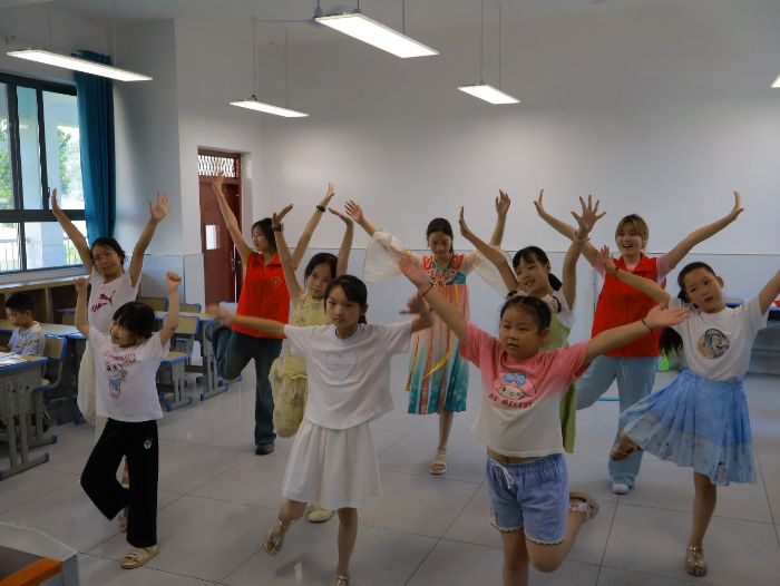 為貫徹鄉村教育賦能鄉村創新,在課程安排上,支教隊員精心設計了兼具創新性、實用性與趣味性的多元課程,確保孩子們能學有所得,學得開心,讓支教的影響更持久。網絡游戲課上,志愿者以“拒絕電子海洛因,預防網絡成癮”為主題,引導孩子們正確認識網絡這把“雙刃劍”,學會趨利避害,避免危害身心健康及學業。舞蹈課上,是早已將舞蹈動作熟記于心的女隊員們將動作細細分解,手把手教給小朋友,在孩子們心中播撒下藝術的種子。那些無數夜晚中亮起的燈光,是隊員們對教學方法、課堂內容一次次精進的見證。