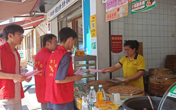 圖為宣講團向社區(qū)商鋪進行文明環(huán)保宣傳 胡顥鐘攝