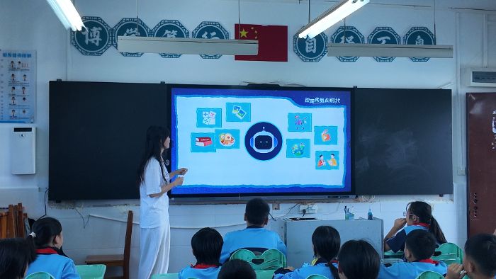 在科普宣講課堂上,“智啟未來”社會實(shí)踐隊(duì)成員將前沿的AI知識以易懂有趣的方式傳遞給學(xué)生,引導(dǎo)他們在動手體驗(yàn)中感受科技奧秘,在交流討論中暢想未來可能。此活動不僅拓寬了孩子們的眼界,還培養(yǎng)了他們的創(chuàng)新思維和實(shí)踐能力,體現(xiàn)了高校服務(wù)社會、傳播知識的責(zé)任與擔(dān)當(dāng)。