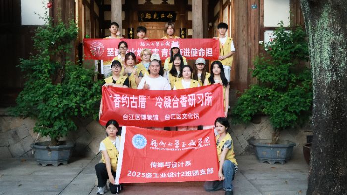 秋風送爽,薪火相傳。為深入學習非遺文化、賡續(xù)匠心精神,2025年10月14日,福州大學至誠學院傳媒與設計系2025級工業(yè)設計2班團支部走進福州冷凝合香非遺傳承人陳衛(wèi)平工作室,開展以“至誠薪火燃新志青春奮進使命擔”為主題的‘行走的思政課’研學活動。