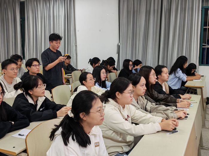 為幫助同學們建立系統認知,活動伊始,主講人圍繞“能源的演進與核能的未來”展開講解,系統介紹了核裂變與核聚變的基本原理、我國核電發展現狀及“人造太陽”EAST裝置的重大突破。理論講解后,主題討論環節隨即展開。同學們圍繞“誰是中國核事業的奠基人”“核聚變能否真正點亮未來”等問題展開熱烈交流。大家紛紛提及錢學森、鄧稼先、于敏等科學家隱姓埋名、以身許國的感人事跡,表達了對老一輩科學家的崇高敬意。多位同學主動發言,結合專業背景暢談核能在能源轉型、航天探索、醫學應用中的廣闊前景,展現了跨學科的思考能力。