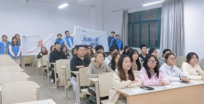 為深入學習貫徹黨的二十大精神,賡續(xù)“熱愛祖國、無私奉獻,自力更生、艱苦奮斗,大力協(xié)同、勇于登攀”的“兩彈一星”精神,2025 年 10 月 21 日,湖北大學知行學院“紅曜一心”志愿宣講團在知真樓 107教室舉辦“黨領(lǐng)導(dǎo)下的核工業(yè)”主題宣講。活動以“你說我猜、印章寄情、誓言明志”為主線,把黨的光輝歷程與我國核工業(yè)跨越式發(fā)展的壯麗史詩深度融合,為現(xiàn)場 數(shù)百余名學子帶來一場“有知有味”的沉浸式思政大課。