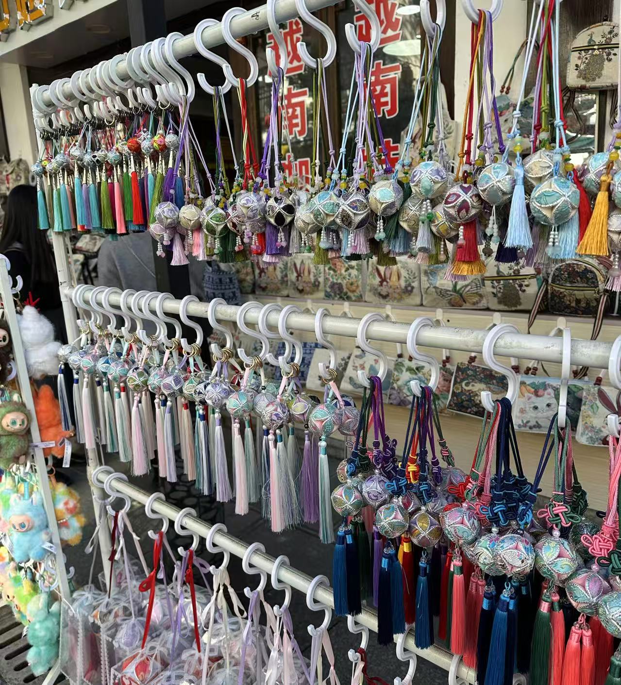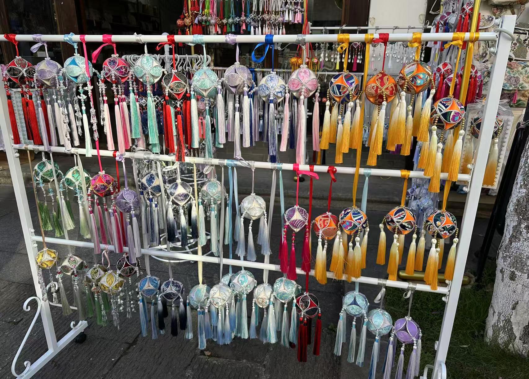考察期間,黃煒走訪了古鎮內的主要商業街區,觀察了現有旅游紀念品的種類和銷售情況,并與部分商戶進行了初步交流。調研發現,錦繡古鎮作為新興的文化旅游目的地,年客流量穩定,游客對具有地方特色的文創產品表現出強烈興趣。然而,市面上現有的繡球產品仍以傳統裝飾品為主,存在設計單一、實用性不足等問題,難以滿足年輕游客對“時尚性”與“日常化”的消費需求。