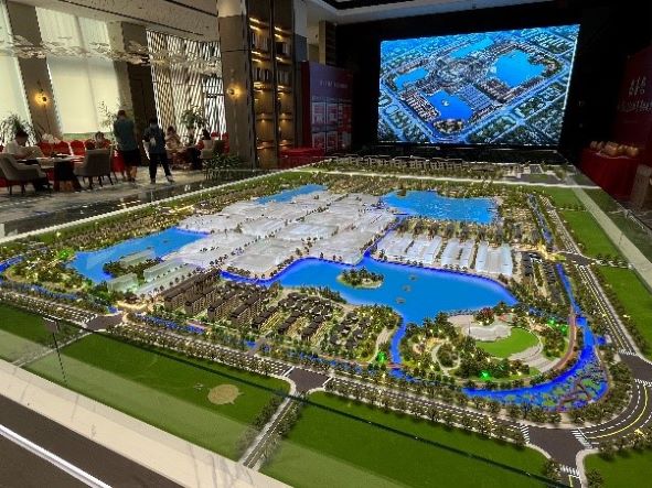 最后,實(shí)踐團(tuán)來(lái)到了寧陵當(dāng)?shù)匚穆萌诤系闹饕?xiàng)目所在地——葛天文化城,在規(guī)劃展館里可以看到未來(lái)規(guī)劃藍(lán)圖,主要包括了“四湖四園”,分別是葛天湖、信陵湖、張弓湖、呂坤湖,以及與其一一對(duì)應(yīng)的葛天園、信陵園、張弓園、呂坤園,以生態(tài)賦能讓生態(tài)資源和諧地融入城市肌理,將四湖相連,并在四個(gè)湖泊岸邊分別新建四園,在文化城東西南北四個(gè)方向新建四座城門(mén),在中心區(qū)域建設(shè)商業(yè)中心、仿古街區(qū)、美食街坊等,以文促旅,助力鄉(xiāng)村振興。