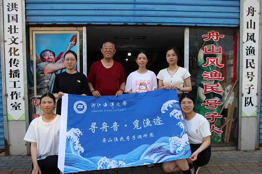 舟山漁民號子作為一項國家級非物質文化遺產是歷代漁民和船工在手工漁業勞動中產生的智慧結晶。為了在新時代讓舟山漁民號子得到有效保護,繼續發揚其精神品質,浙江海洋大學“尋舟音·覓漁跡”舟山漁民號子調研團于2022年7月21日前往洪國壯文化傳播工作室,采訪舟山漁民號子的代表性傳承人洪國壯,與其進行了深入交流,深刻學習了舟山漁民號子的文化內涵,并了解了號子當下的發展現狀。