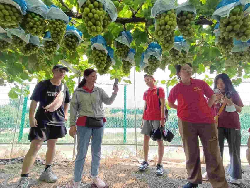 總書記強調,現代高效農業是農民致富的好路子,要沿著這條路子走下去……四季春農業園作為世業鎮鄉村產業振興的一個杰出成果,實踐團因此將其作為第一站進行實地考察。為進一步感受四季春農業園在產業振興方面取得的模范式成就,團隊有幸邀請到四季春農業園的負責人——曾與習總書記對話的葉明蘭阿姨為成員們進行介紹。葉阿姨帶領成員們深入園區參觀,詳細介紹了農業園以高效農業為目標形成的多種綠色生態的種植模式。在現代科技飛速發展的環境下,農業園的負責人時刻不忘總書記的囑托,迅速跟上發展的腳步,堅持科技興農,帶動當地村民積極就業,走出了一條以高效農業為導向,注重員工福祉、講求產品品質的特色產業發展之路。