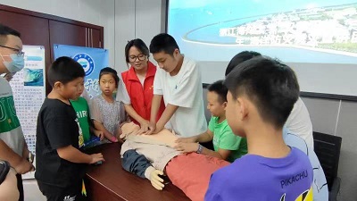 在“急救小課堂”部分,擁有紅十字會急救證書的成員擔任講解員,現場向大家展示了在緊急情況下如何正確應對,包括包扎、人工呼吸和心肺復蘇等。針對夏季溺水高發(fā)期,實踐團還自行拍攝了真人防溺水科普視頻。通過現場體驗,互動嘗試、你問我答等方式既讓孩子們感受到“新穎好玩”,又讓他們學習到了如何在緊急情況下正確自救,現場十分活躍。“原來人工呼吸和心腹復蘇還有那么多注意事項啊,我還以為只要速度快就可以了呢!”曉峰社區(qū)的邵同學說。