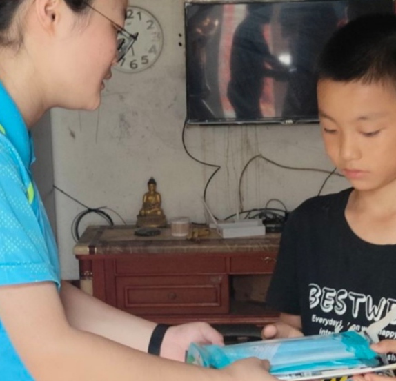 活動過程中意外不斷,農村學生由于缺乏父母在旁大多對自己的安全不屑一顧甚至習以為常。波波老師實踐隊隊員王德波發現了一名課間玩耍時不慎劃傷腳趾卻全然無所謂的二年級學生小遠,溫聲細語詢問原因后立馬給擦拭碘伏,在為孩子處理傷口的同時借勢科普日常醫學防護知識。波波老師老師談到,事后學生一句從未有人幫自己處理過傷口的話讓他心里百感交集。學生支教活動并非一帆風順,低年級學生之間偶爾矛盾不斷,珊珊老師實踐隊隊員董珊珊就多次調解四年級學生友情糾紛頗有心得。這天經過珊珊老師親切溫柔的細語剖析,兩位方才還在互不服氣的小伙伴轉眼間和好如初。田田老師實踐隊隊員王田美子也感慨自己的支教之旅養成了隨身攜帶藥品的好習慣,隨時隨地為受傷同學處理傷口。