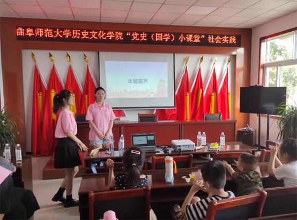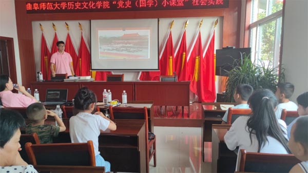 為傳播優秀革命精神和共產黨精神,宣傳傳統文化,關愛農村貧困學生和留守兒童,深入了解黨的基層治理,深入人民群眾了解現實國情民情,感受黨的十八大以來,我國鄉村振興成果,堅決跟黨走,投身強國偉業。曲阜師范大學歷史文化學院“黨史國學小課堂”校地共建實踐團于7月3日深入濟寧市汶上縣中都街道西槚柏村,對孩子進行黨史國學相關知識的授課,并進行基層調研。