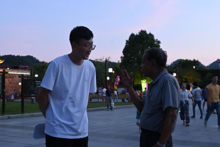 圖為團隊成員與老城居民進行交流。中國青年網通訊員 鄧兆淇 攝